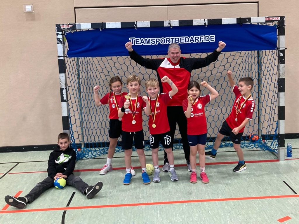 Das Halbfinale gegen die Mannschaft aus Bolheim konnten wir lange ausgeglichen gestalten aber letztendlich gingen wir hier mit 23:13 als Verlierer vom Platz. Schlussendlich stand uns dann das Spiel um Platz 3 bevor. Wie im ersten Spiel war die 2. Mannschaft aus Herbrechtingen wieder unser Gegner. Nach bereits 4 Spielen ohne Auswechselspieler ließen die Kräfte aber überhaupt nicht nach. Den Pokal vor Augen war die richtige Motivation für unsere Mannschaft. Zur Halbzeit führten wir bereits mit 7:3. Die SHB 2 bäumte sich aber nochmals auf. Eine super Schlussphase unsere Mannschaft war aber dann der entscheidende Schritt zum 3. Platz. Die Freude bei den Kids war riesengroß.